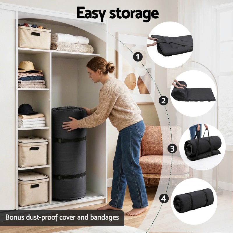 Transform any floor into a cosy sanctuary with the Giselle Bedding 10cm Japanese Floor Mattress. This foldable futon-style mattress combines a 25D high-density foam layer and cotton padding for even support and spinal alignment, while a skin-friendly microfibre cover is removable and machine washable. Lightweight and rollable with bonus storage straps this versatile mat is ideal for guests camping yoga or as a comfy pet bed in all seasons.