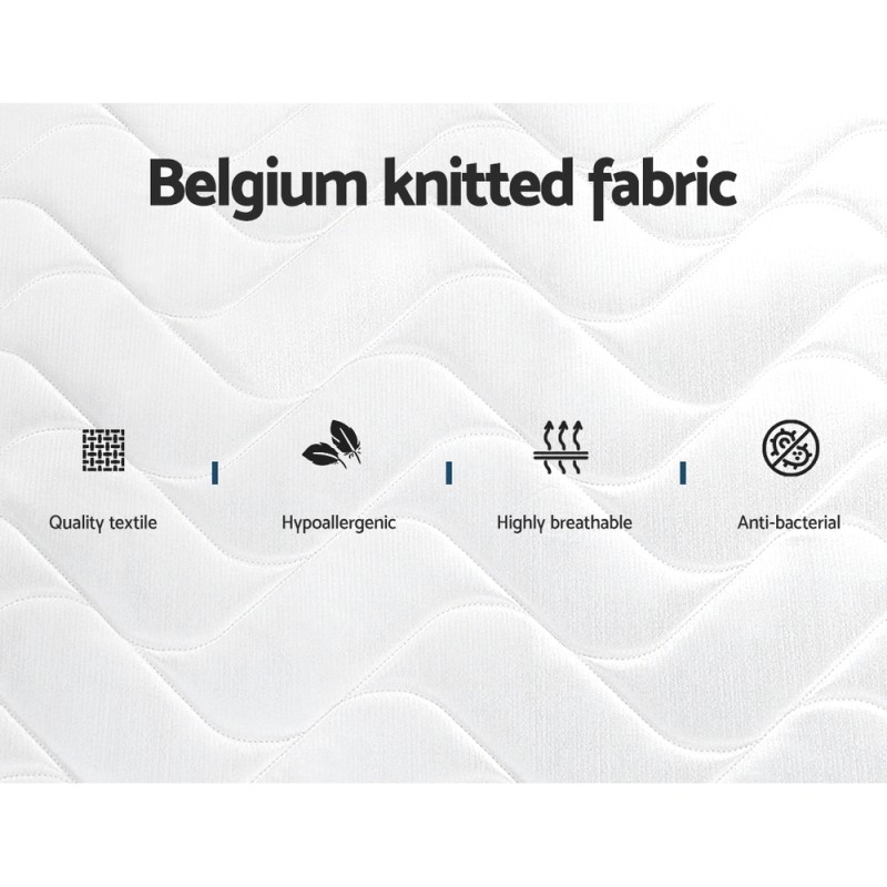 Experience unparalleled comfort with the Giselle Bedding Alessio Series Mattress. Designed for those in need of a medium-firm solution, this 13cm Bonnell spring mattress provides exceptional support to alleviate muscle and body aches. Encased in luxury knitted fabric with a soft quilting top, it features high-density foam and a 6-turn coil system for zero partner disturbance. Hypoallergenic and resistant to dust mites and mould, this mattress ensures a healthier, more restful sleep.