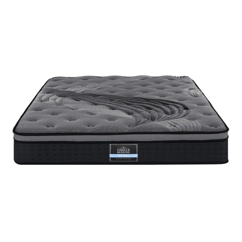 Experience unparalleled sleep health with the Giselle Bedding Alanya Series 34cm Euro Top Mattress. Featuring a 500gsm bamboo charcoal knitted fabric cover, this mattress ensures better blood circulation and reduced stress. Its plush Euro Top padding, high density foam, and innovative independent coil system provide zonal support and medium-firm comfort. Enjoy rejuvenating mornings with this luxurious 34cm thick mattress, designed for those who seek quality sleep. Get yours today with a 5-year warranty.