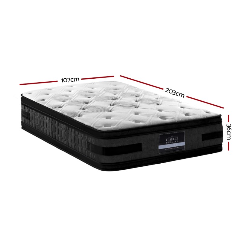 Indulge in the perfect night's sleep with the Giselle Bedding Luna Series Euro Top Mattress. This 36cm thick masterpiece combines luxury with innovation, featuring ultra-soft Belgium knitted fabric and a versatile double-sided design. Choose between the cool gel memory foam for a refreshing feel or the high-density egg-shaped foam for firm support. The 7-zoned EvenZon pocket spring system ensures zero partner disturbance, while hypoallergenic materials protect against allergens and dust mites. Experience unparalleled comfort and support, making restful sleep a reality.