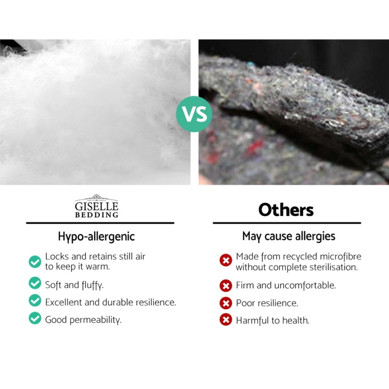 Experience luxury and versatility with Giselle Bedding's 4 Pack Bed Pillow Set. Perfectly curated for families or hospitality, this set includes 2 firm pillows ideal for side sleepers and 2 medium pillows for back or stomach sleepers, all featuring a plush polyester fibre filling and a soft 100% cotton cover. These pillows ensure comfort and adaptability, whether at home or in your hotel. Conveniently vacuum packed for easy storage and transport, they fit standard pillow covers effortlessly.