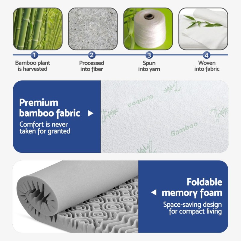 Transform your sleep with the Giselle Bedding 8cm Memory Foam Mattress Topper. Infused with graphite and featuring a 7-zone contoured egg crate structure, this topper offers superior airflow, over 1000 support points, and targeted pressure relief. The open-cell memory foam ensures even weight distribution and motion control, while the removable bamboo fabric cover adds a soft, breathable touch. The anti-skid base keeps your topper in place for uninterrupted, restful nights.