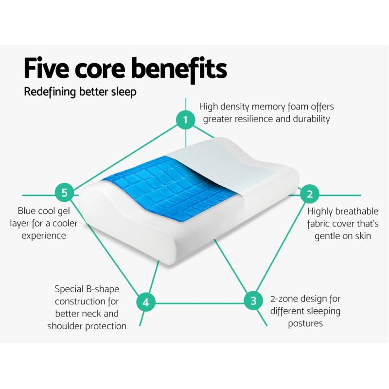 Elevate your sleep experience with the Giselle Bedding Contour Pillow Cool Gel Twin Pack. Crafted with 100% visco elastic memory foam, these pillows offer high-density support at 55kg/m3, ensuring optimal neck and shoulder alignment. The unique contour shape coupled with a refreshing cool gel layer provides a soothing, sleep-inducing surface, perfect for all sleep positions. Highly breathable and designed to evenly distribute weight, these pillows minimise pressure points for unparalleled comfort. Complete with a removable jacquard knitting fabric cover, they promise a fresh, hygienic sleep environment every night.