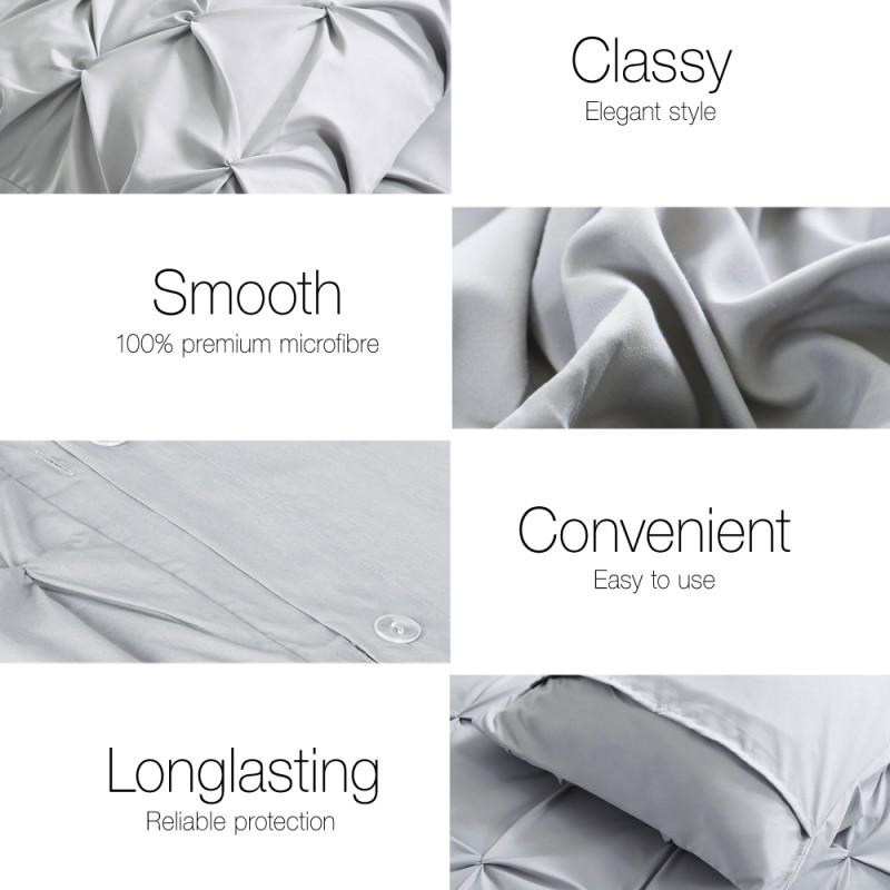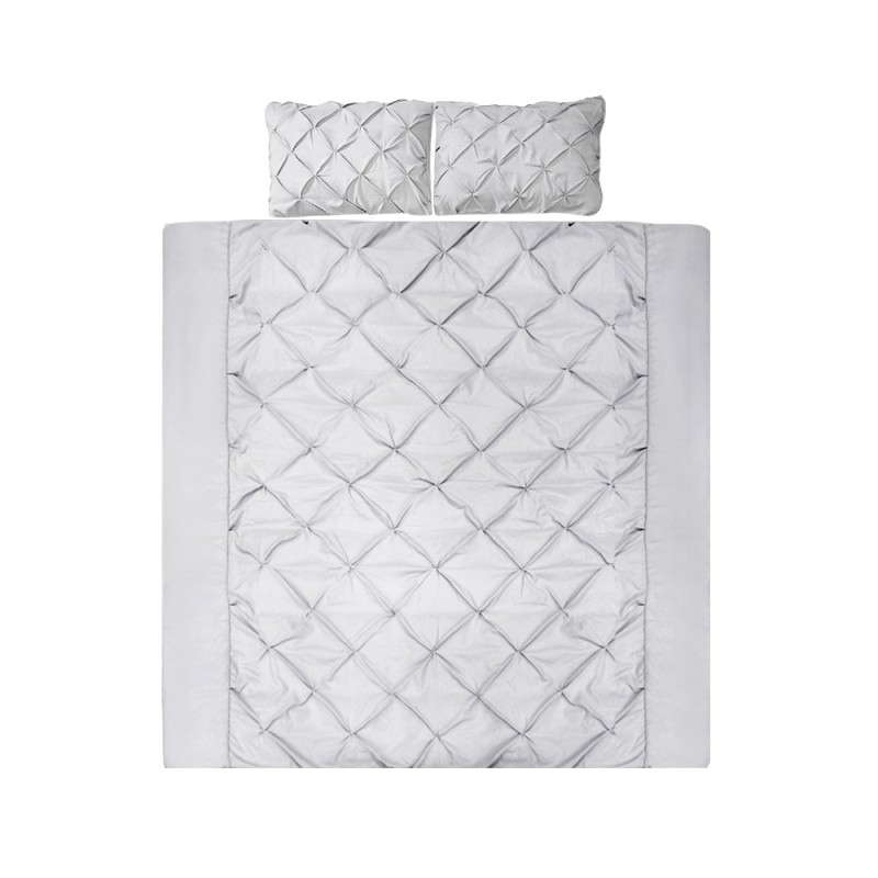 Transform your bedroom into a sanctuary of style with the Giselle Bedding Diamond Pintuck 3-piece Duvet Set in Grey. This Queen-size set, featuring an elegant pinch pleated design, brings a chic flair to your decor while offering unmatched comfort. Crafted from 100% premium microfibre, the set is lightweight, breathable, and soft on the skin, ensuring a restful night's sleep. Designed for convenience, the quilt cover and pillowcases are machine washable, making maintenance a breeze. With a focus on durability, this set not only enhances your bedroom's aesthetic but also protects your duvet. While the well-packaged set ensures it arrives in perfect condition.