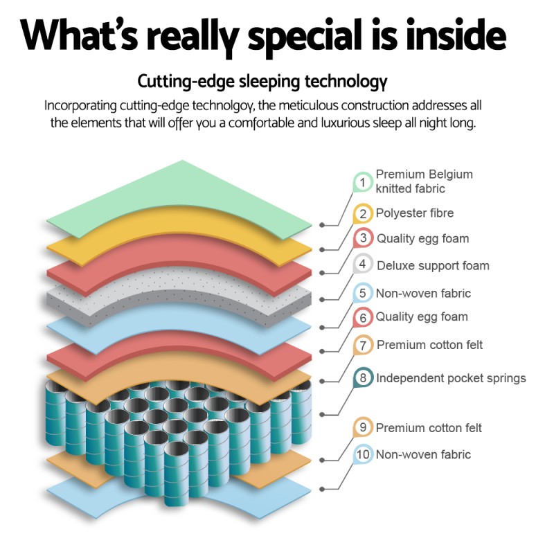 - 5 zoned pocket springs for different levels of support