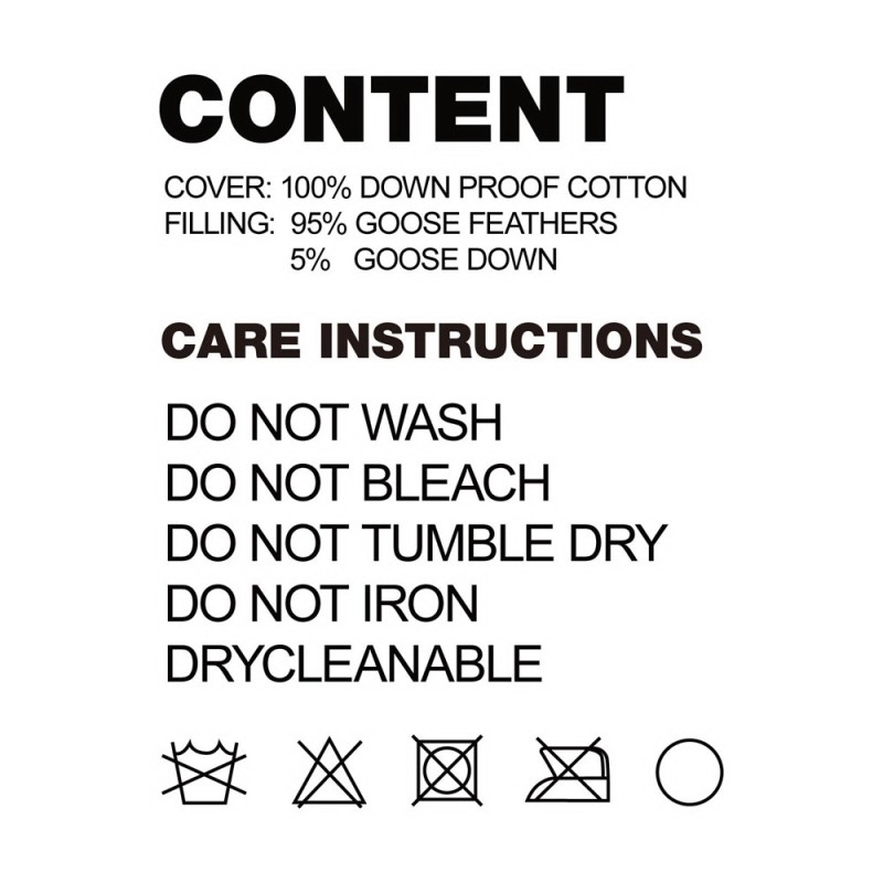 - Filling: 95% goose feathers and 5% goose down