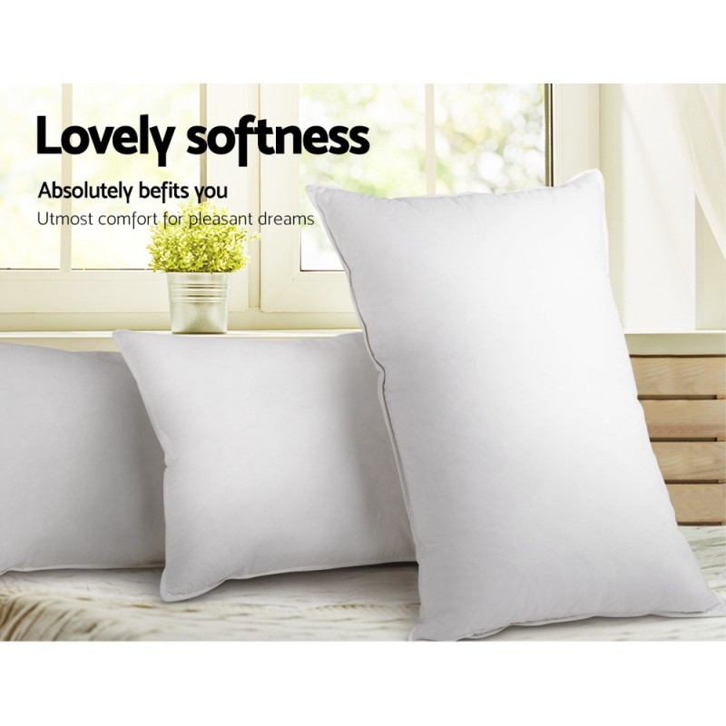 Experience luxurious comfort night after night with the Giselle Bedding Goose Feather Down Pillow Twin Pack. Each pillow is generously filled with 1kg of ethically sourced goose feathers and down, encased in ultra-soft, hypoallergenic 233-thread count down proof cotton Japara with elegant piped edges. Perfect for those seeking superior support and breathability, this twin pack ensures a restful and refreshing sleep in every season.