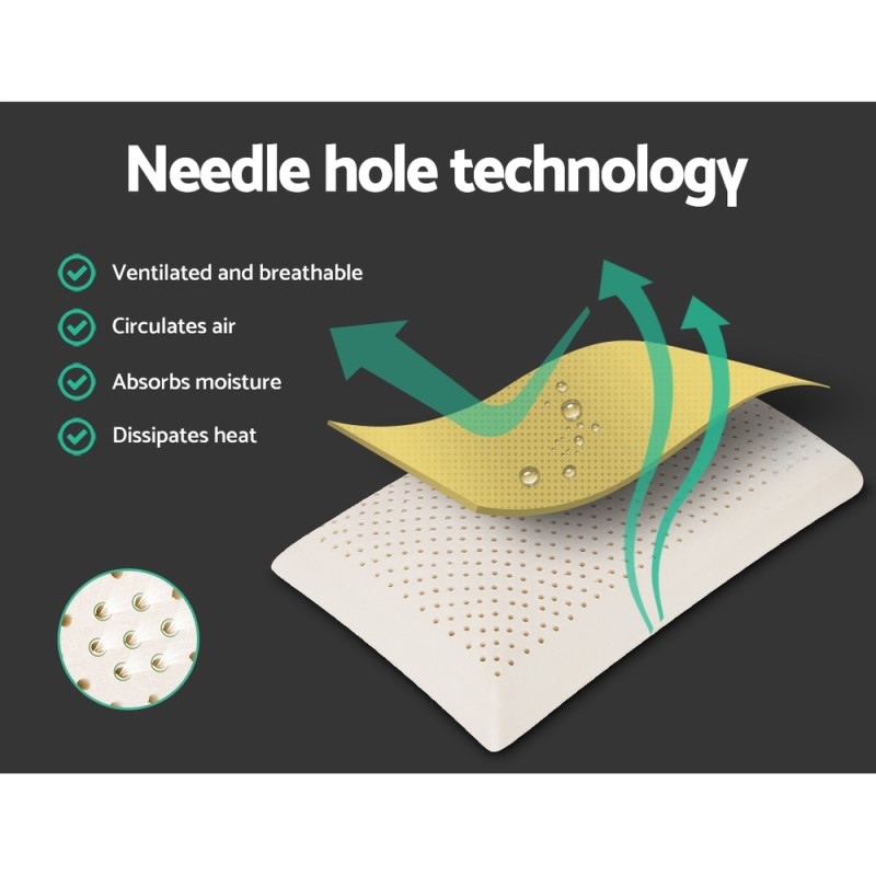 Experience the ultimate in comfort and support with the Giselle Bedding Natural Latex Pillow Classic Twin Pack. Crafted from 100% natural latex, these pillows provide a soft, resilient feel that naturally conforms to your head and neck, offering a fast rebound with zero pressure for unparalleled comfort. Enhanced with needle hole technology, the pillows are well-ventilated and breathable, ensuring moisture absorption and heat dissipation for a stress-free sleep. Durable, eco-friendly, and hygienic, they resist dust mites, bacteria, and mould. Complete with a removable and washable zippered cover, these pillows promise long-lasting freshness.