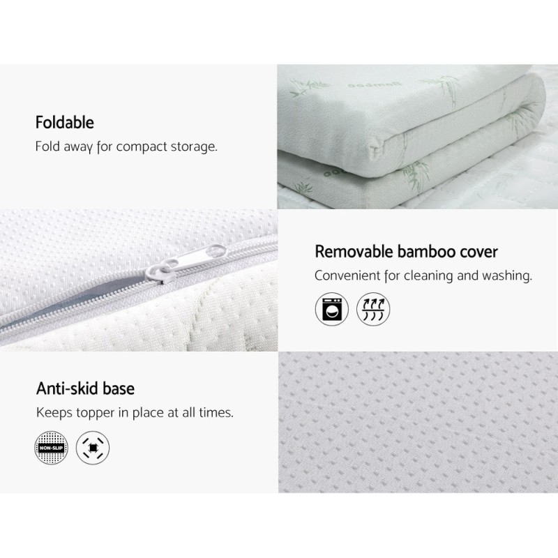 Elevate your sleep experience with the Giselle Bedding Memory Foam Mattress Topper, Cool Gel 10cm Queen. Designed to add a luxurious 5cm of extra comfort, this topper delivers an extraordinary upgrade to your mattress. The cool gel-infused memory foam provides targeted relief to pressure points, ensuring a cooler and more restful sleep. It contours to your body shape for personalised comfort, promoting even weight distribution and minimising motion disturbance. The eco-friendly bamboo fabric cover enhances breathability, making it the perfect addition to transform your sleep from good to great. Note: Gel may warm up slightly slower than foam for temporary cooling.
