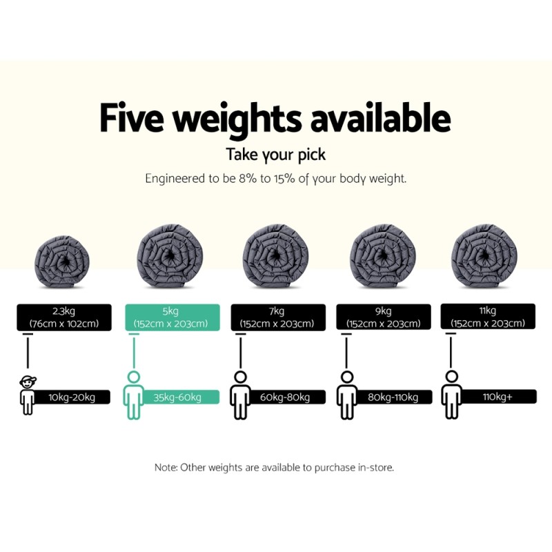 Transform your sleep experience with the Giselle Bedding Weighted Blanket. Designed with Deep Touch Pressure Simulation (DTPS) technology, this blanket provides a calming sensation that mimics the feeling of being hugged, promoting relaxation and enhancing sleep quality. Weighing 5kg, its premium microfibre cover and eco-friendly glass bead filling offer a soothing embrace that adapts to your body shape. Enjoy a restful night's sleep and wake up refreshed and revitalised with this durable, machine-washable blanket.