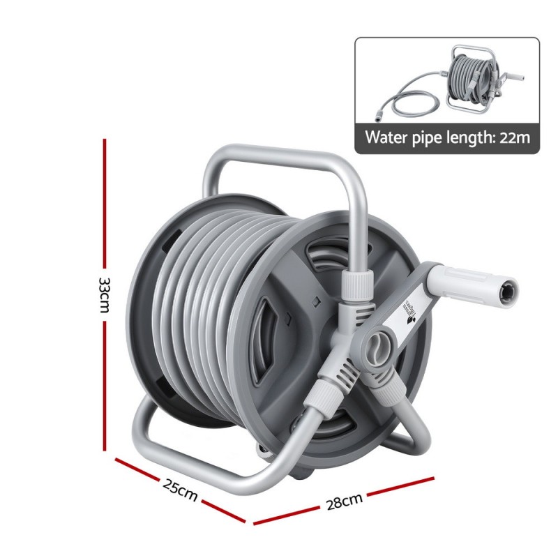 Effortlessly elevate your garden care routine with the Green Fingers 20m Retractable Garden Hose Reel. Designed for convenience and durability, this hose reel features a 20m retractable hose and an additional 2m inlet, ensuring you can easily reach every corner of your garden, lawn, or driveway. Its versatile spray gun offers mist and centre modes, perfect for gentle watering or powerful cleaning. Constructed from sturdy PP and PVC, the 1/2'' hose with a 3/4 BSP connection ensures a leak-free performance up to 8 bar pressure. The compact, tangle-free reel in a sleek grey finish not only saves space but adds a modern touch to your outdoor area.