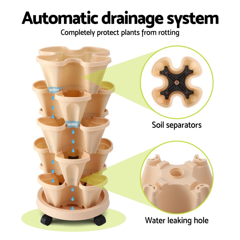 Experience the joy of urban farming with the Green Fingers 5-Tier Vertical Garden Bed. Perfect for those dreaming of a lush garden but limited by space, this innovative stackable design transforms your balcony, patio, or kitchen into a thriving green sanctuary. Grow up to 5 times more produce in the same footprint, ideal for urban dwellers and gardening enthusiasts. The integrated Automatic Drainage System ensures optimal root health, while 4 heavy-duty movable casters offer total flexibility and mobility. Adjust the height to fit your space and start your journey towards fresh, organic, home-grown produce today!