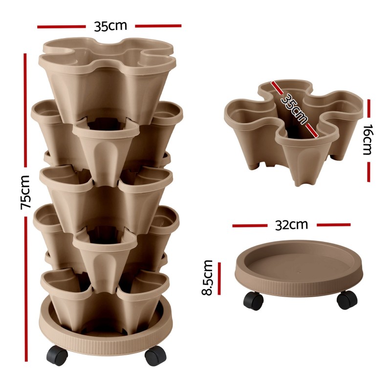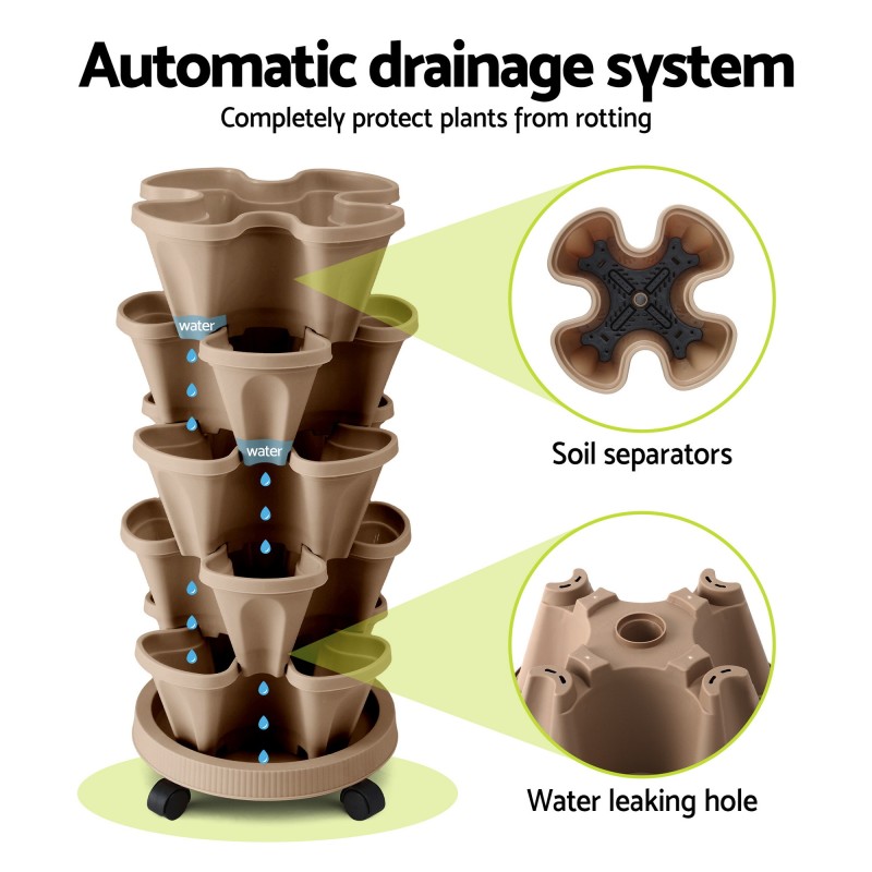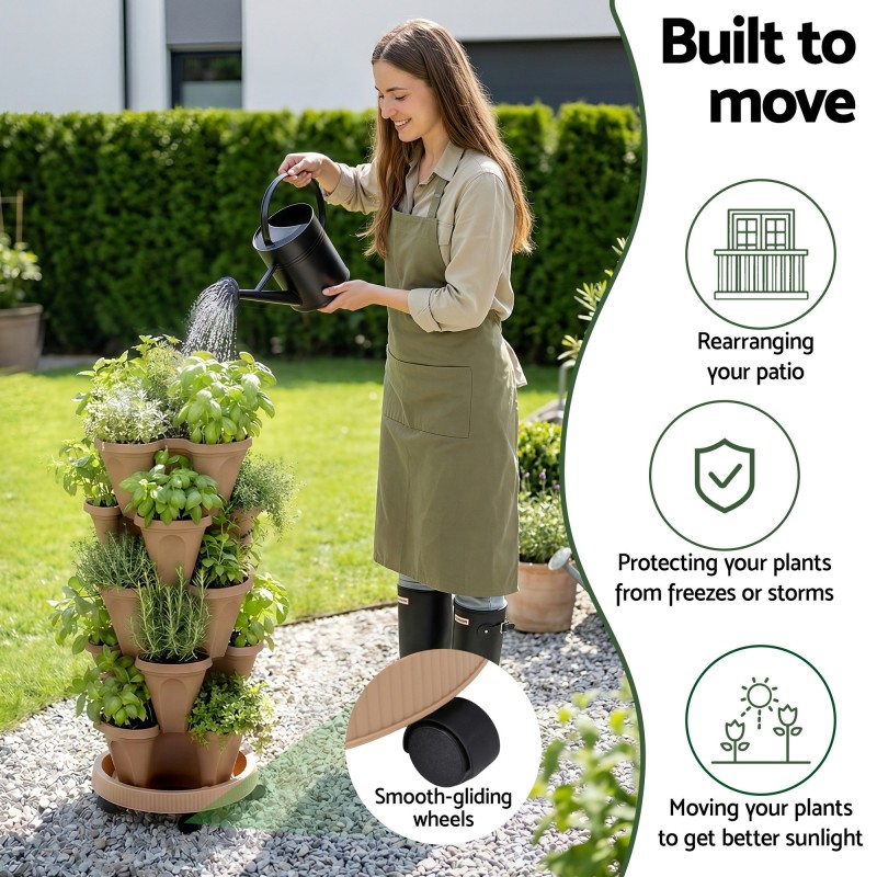 Transform limited spaces into lush gardens with the Green Fingers 5-Tier Vertical Garden Bed. Perfect for balconies, patios, or kitchens, its innovative design allows you to grow up to 5 times more produce. The Automatic Drainage System ensures optimal root health with cascading water flow, preventing waterlogging. Easily movable with 4 heavy-duty casters, this garden bed adapts to light and weather changes. Its stackable modular pots cater to any space, making it ideal for strawberries, herbs, and more. Start your urban farming journey with Green Fingers today!