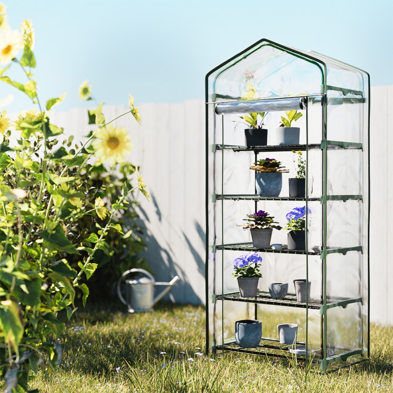 Introducing the Greenfingers Greenhouse - your all-weather solution for thriving greens in any season. Perfect for decks, patios, or small gardens, this 5-tier mini greenhouse shelters plants from harsh weather and pests. Its durable PVC cover and roll-up zipper door ensure easy access and optimal growth conditions. With plant shelves and a tear-resistant, waterproof design, enjoy fresh, home-grown produce year-round. Easy to install and backed by a 1-year warranty, it's time to elevate your gardening game.