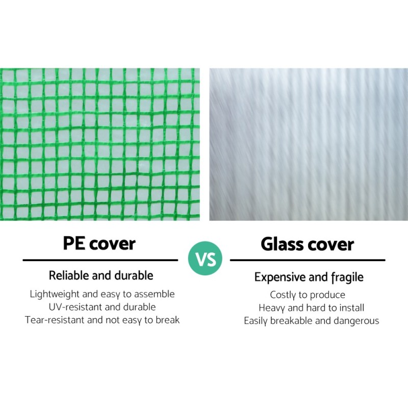 Introducing the Greenfingers Greenhouse, your solution to mastering Australian weather for perfect plant growth. This 6x3x2M walk-in greenhouse is designed for home or light commercial use, shielding your plants from harsh elements and pests. The durable PE cover and sturdy steel frame ensure a warm, protected environment, promoting year-round growth. Enjoy fresh, home-grown produce without supermarket trips, saving money and embracing healthier eating. Easy to set up, it's a gardener's dream!