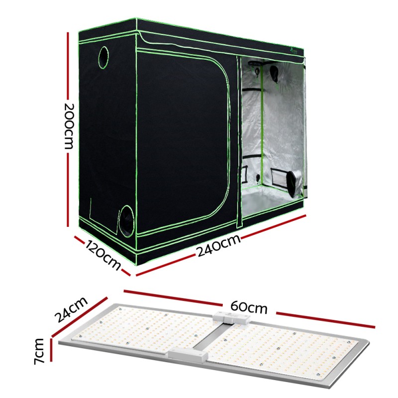 Discover the ultimate indoor gardening solution with the Greenfingers Grow Tent Light Kit. Perfect for both novices and experts, this 240x120x200CM grow tent features a durable steel frame and 600D oxford cloth exterior for long-lasting use. The 2200W LED Full Spectrum Light with Smart App Control simulates sunlight, ensuring healthy plant growth. Easy to set up, it's equipped with adjustable settings for all growth stages, energy-efficient design, and a spacious interior to accommodate your gardening needs.
