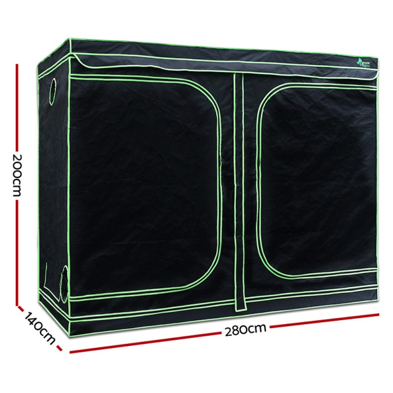 - Grow Tent: 280cm x 140cm x 200cm, Black & Green