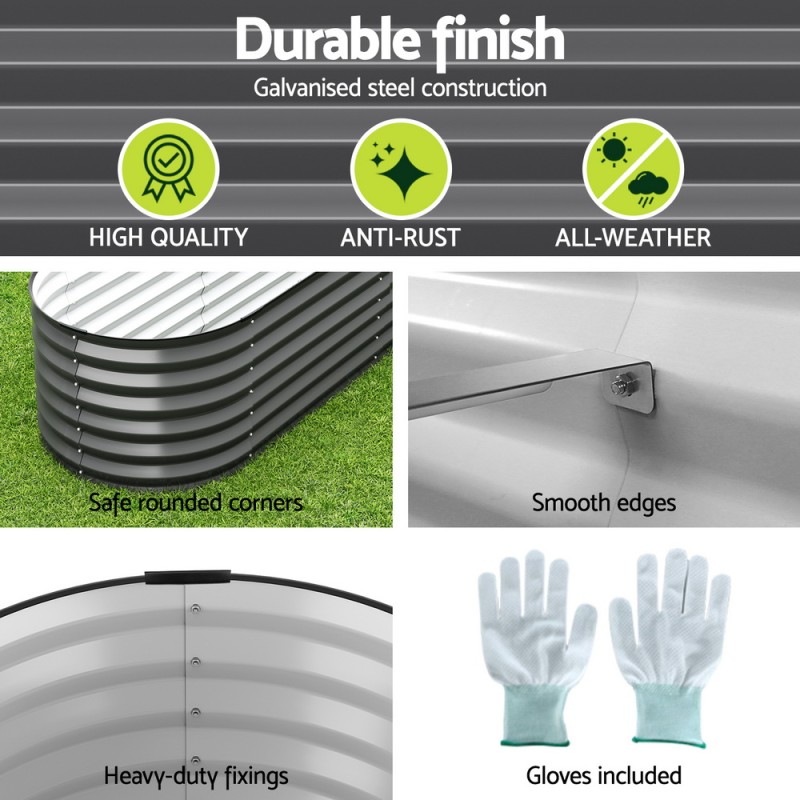 Transform your garden with the Greenfingers Garden Bed 9 In 1 Modular Planter Box. Crafted from robust 0.5mm galvanised steel with a corrosion-resistant finish, this raised bed ensures durability and easy maintenance. Its innovative design allows for 9 unique configurations, offering versatility for any garden space. Perfect for herbs, veggies, or flowers, it features rubber safety edges and is simple to assemble. Enhance your gardening experience with this stylish, practical addition today!