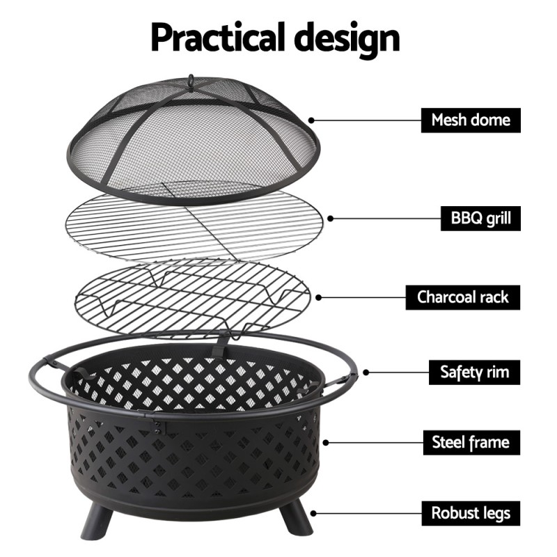 Discover endless outdoor enjoyment with the Grillz 2-in-1 Fire Pit BBQ Grill. Perfect for all seasons, this versatile piece lets you gather around a warm fire or indulge in a delicious BBQ feast. Crafted from robust steel with a heat and rust-resistant coating, it features a safety ring for added protection. Designed for easy airflow, it accommodates both wood and charcoal. Complete with essential accessories, it's your go-to for memorable gatherings. Assembly required.