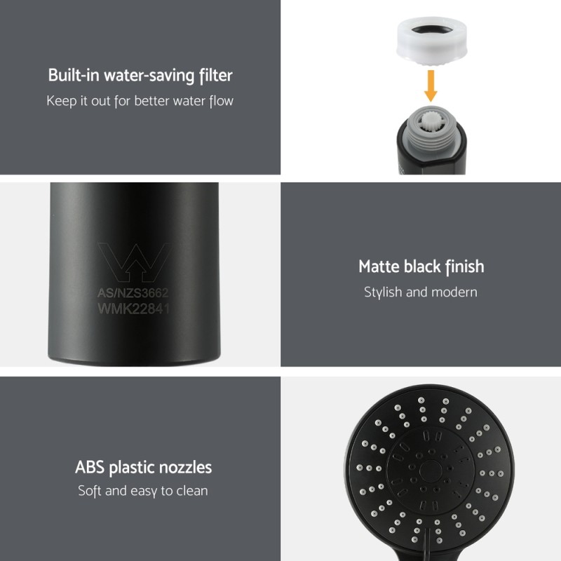 Transform your daily shower into a spa-like experience with our 4.5" High Pressure Handheld Shower Head. Crafted from durable ABS and finished in elegant matte black, this showerhead delivers powerful water flow across five luxurious spray modes—from gentle rain to invigorating massage. Its built-in water-saving filter helps conserve water and can be removed for increased flow. Lightweight and easy to install, it fits most Australian standard fixtures and adds a touch of sophistication to any bathroom.