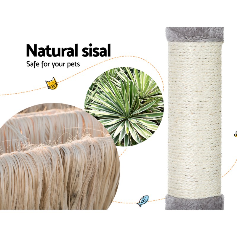 A purrfect way to keep your cats entertained! The i.Pet Cassey medium-sized cat tree caters to your feline friend's scratching instinct and playtime, providing space to relax and nap. This feline wonderland features a bed cubicle, hanging activity ball, ladder, and platforms at varying heights for endless fun. The sisal-covered post protects your furniture, while plush velvet surfaces offer comfort. With a stable base and sturdy wood construction, this cat tree is perfect for energetic exploration.