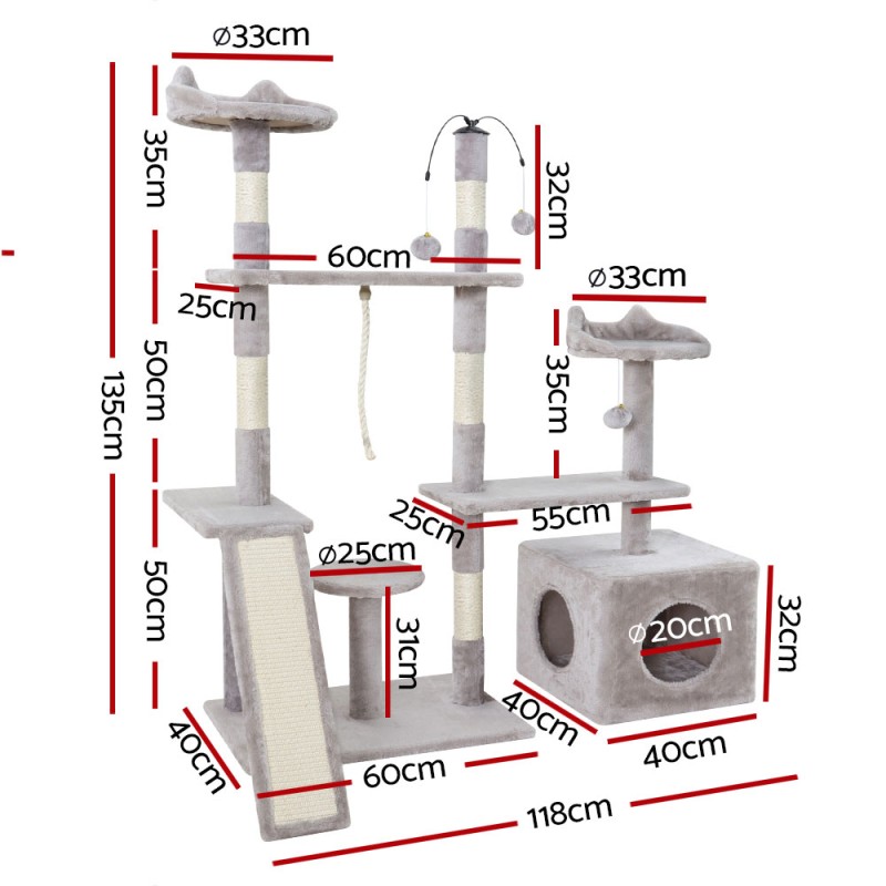 Keep your furry friends entertained for hours with the i.Pet Quadra Cat Tree. This medium-sized tower is a purrfect way to feed your cat's curiosity! Designed with 4 levels of fun, it features play cubicles, a jumping platform, activity balls, and natural sisal posts and claw board to encourage healthy scratching. Upholstered in plush velvet, it's an ideal napping spot after playtime. Crafted from eco-friendly materials, this stable wooden construction is sure to be your pet's favourite plaything. Enjoy peace of mind with a 1-year warranty.