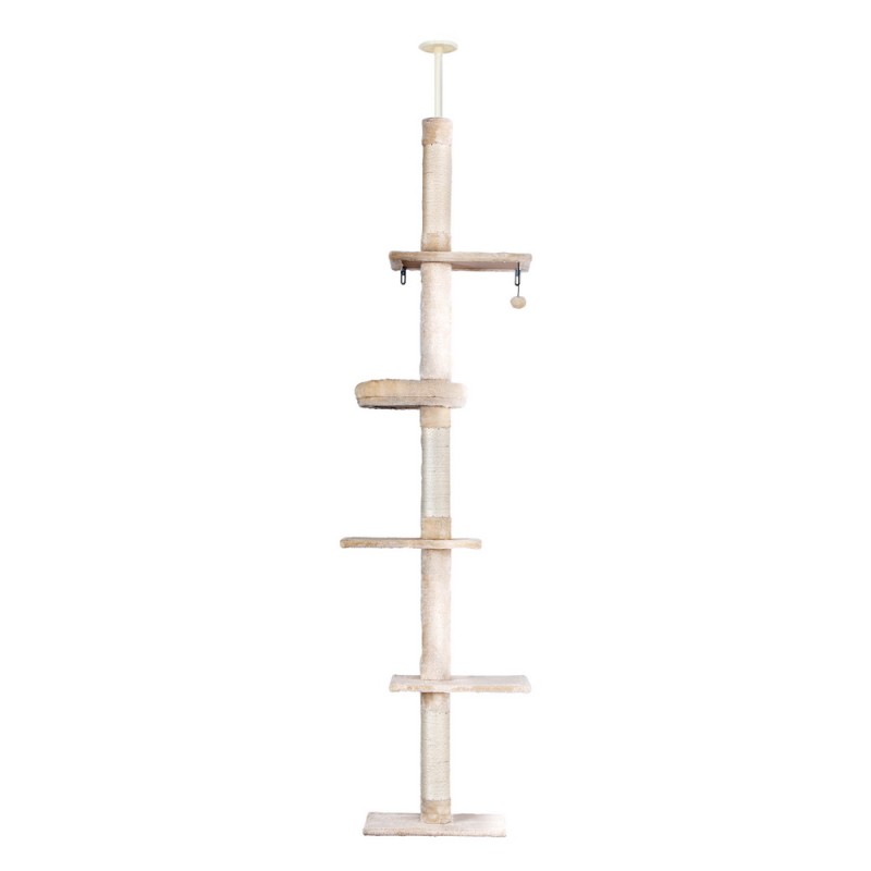 Give your cat a fun place to play and rest without sacrificing space with the floor-to-ceiling Cat Tree from i.Pet. With various playing and napping spots, your cat can have fun and frolic without taking up floor space. Made from sturdy wood with a stable base, the cat tree stands tall and proud. Wall mounting tools are included for added stability. Adjustable height accommodates different homes and cat preferences. Natural sisal posts encourage scratching instincts, while the hanging toy promotes playful hunting. The multi-layer design with 5 platforms allows your cat to sit high and observe. Soft, plush cover is gentle on paws. With the i.Pet Cat Tree, your cat enjoys its natural instincts in safety, comfort, and style.
