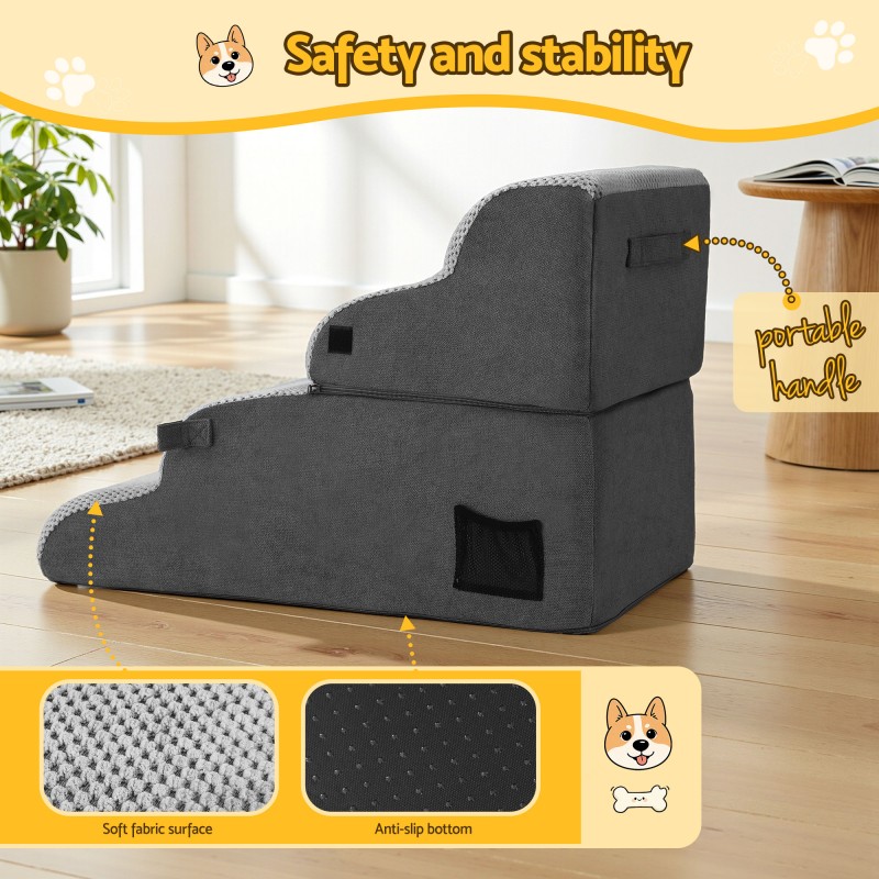 Meet the i.Pet 2-in-1 Multi-Use Dog Stairs and Bed, the ultimate solution for your beloved pet's comfort and mobility. This innovative design doubles as a safe, supportive stairway for easy access to furniture and a plush, cosy bed for resting. Crafted with high-density foam, it provides firm support for a joint-friendly climb and a comfortable sleeping spot. The non-slip suede fabric gives secure footing, while the water-resistant bottom protects from moisture. Easy to clean, the cover is machine washable. Compactly delivered and quick to set up, it perfectly suits smaller pets or those with mobility concerns.