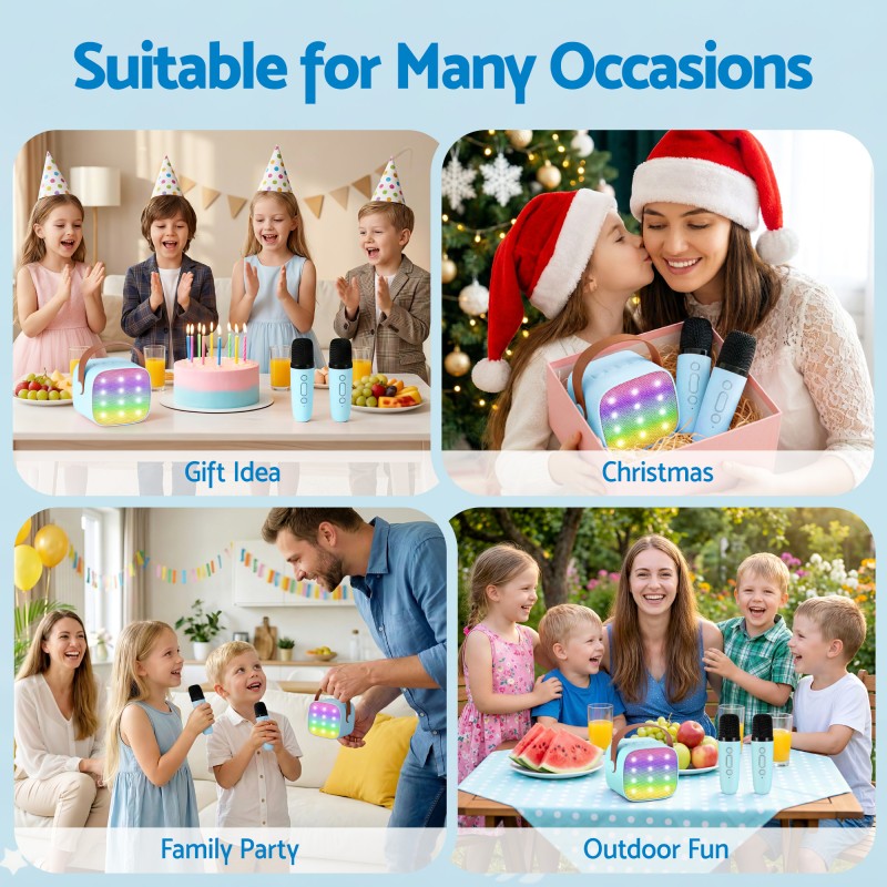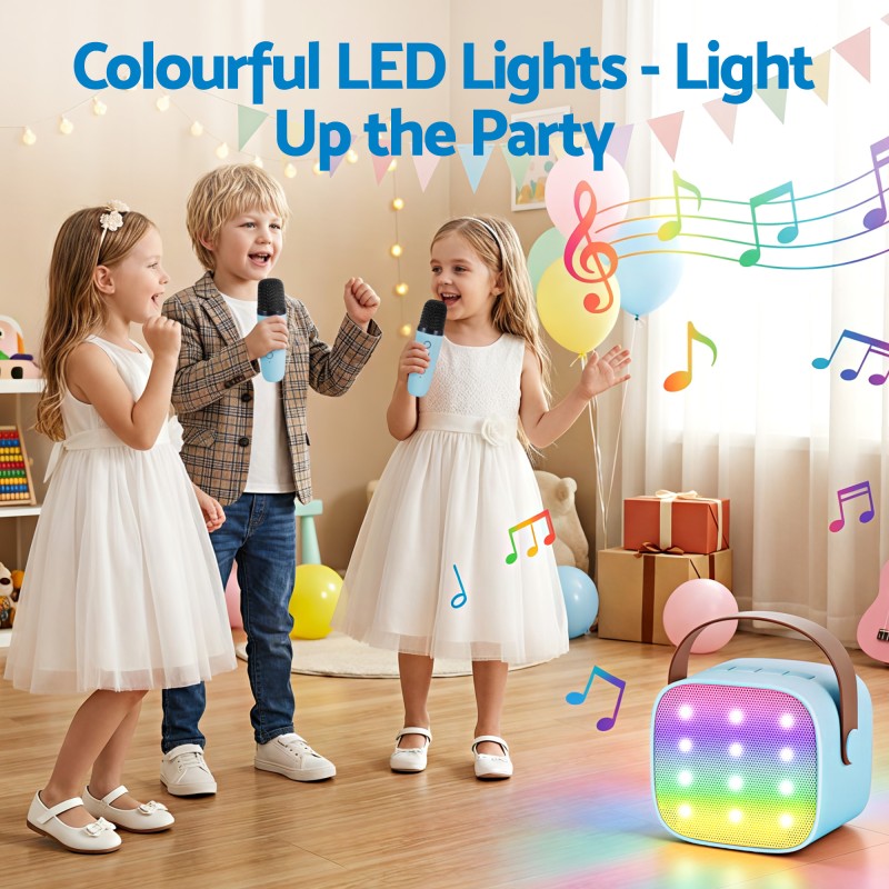 Unleash your inner superstar with the Alpha Mini Portable Karaoke Machine! Perfect for music lovers of all ages, this compact device transforms any space into a stage with its high-fidelity sound and dazzling LED lights. Ideal for backyard bashes or cosy nights in, the dual wireless microphones allow everyone to join the fun. Featuring super MP3 audio processing, Bluetooth 5.0 connectivity, and magic voice effects, this easy-to-carry machine delivers professional audio experiences. Get ready to bring joy and music into your home with this ultimate portable karaoke experience!