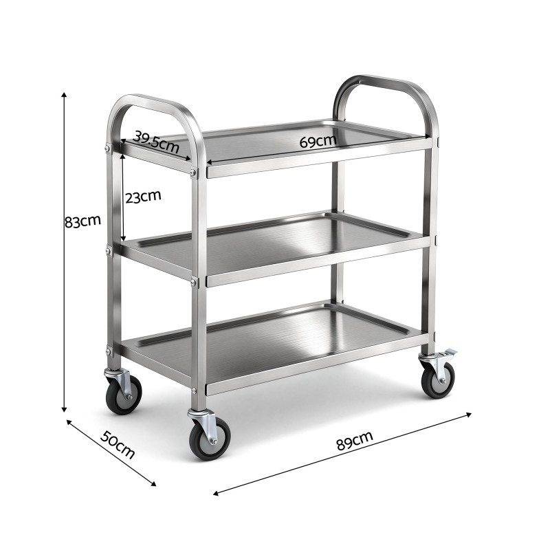 Need extra bench space that moves with you? The Cefito 3-Tier Stainless Steel Kitchen Trolley is your solution! Crafted from 201 stainless steel, it offers durability and cost-effectiveness for everyday use. Its 3-tier design provides flexible storage and workspace, while lockable castors let you wheel it anywhere and secure it in place. With four smooth-rolling castors—two of them lockable—you can easily move it across the floor and secure it safely. Its open-frame design makes cleaning quick and hassle-free. Perfect as a kitchen island, prep station, or service cart for home, café, or market stall.