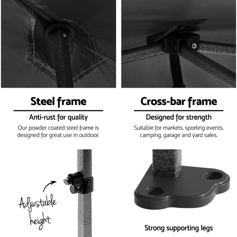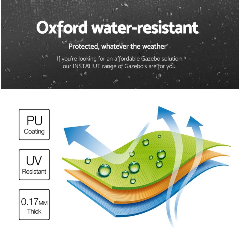 If you're looking for a stylish and reliable pop-up tent to host your outdoor event, the INSTAHUT Gazebo is the ultimate all-round covered shelter for you. Measuring 3x3m, it's made of waterproof and UV-resistant PU Coating Oxford fabric. The tent includes a bonus mesh panel to keep insects out while letting fresh air in. It's easy to set up with pre-fitted Velcro attachments and adjustable heights. When done, fold and store it in the included Oxford-weave carry bag. Ideal for weddings, sports events, trade shows, and more, it's premium quality at an affordable cost all year round.