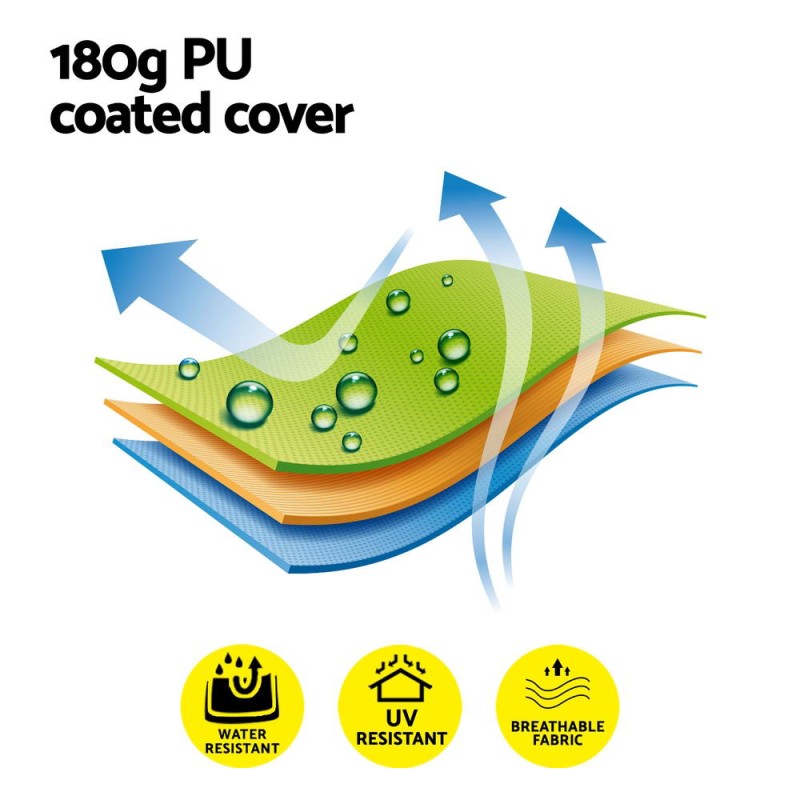 Elevate your outdoor cooking experience with the Instahut Grill Gazebo. Crafted with a robust powder-coated steel frame and durable PU-coated polyester fabric, it offers UV and water resistance for all-weather use. The gazebo features an extra strong crossbar, sturdy legs, and quick attachments, making it perfect for grilling and BBQs. It includes a flat metal mesh shelf, five hanging hooks, and a built-in bottle opener for convenience. Enjoy peace of mind with a 1-year warranty.