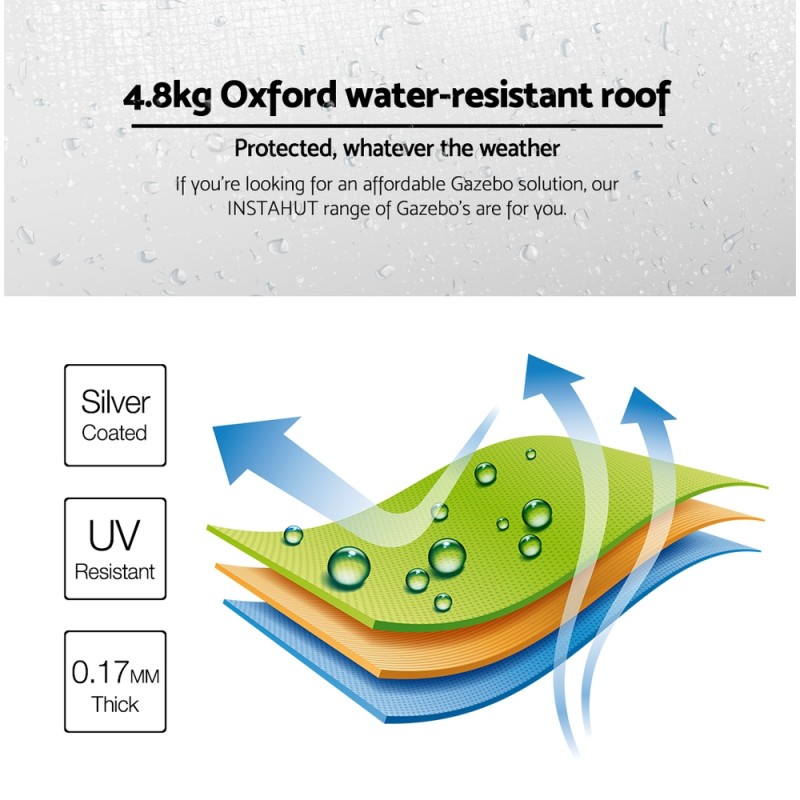 Experience outdoor events with ease using the INSTAHUT Gazebo Pop Up Marquee. Crafted from durable 500D Oxford fabric with a PU coating, it offers 450x300cm of UV and water-resistant coverage. A robust powder-coated steel frame ensures stability, while quick Velcro attachments and adjustable heights provide effortless setup. Perfect for markets, sports, camping, and more, this versatile tent is built for convenience and durability. Note: Not for permanent use or extreme weather.