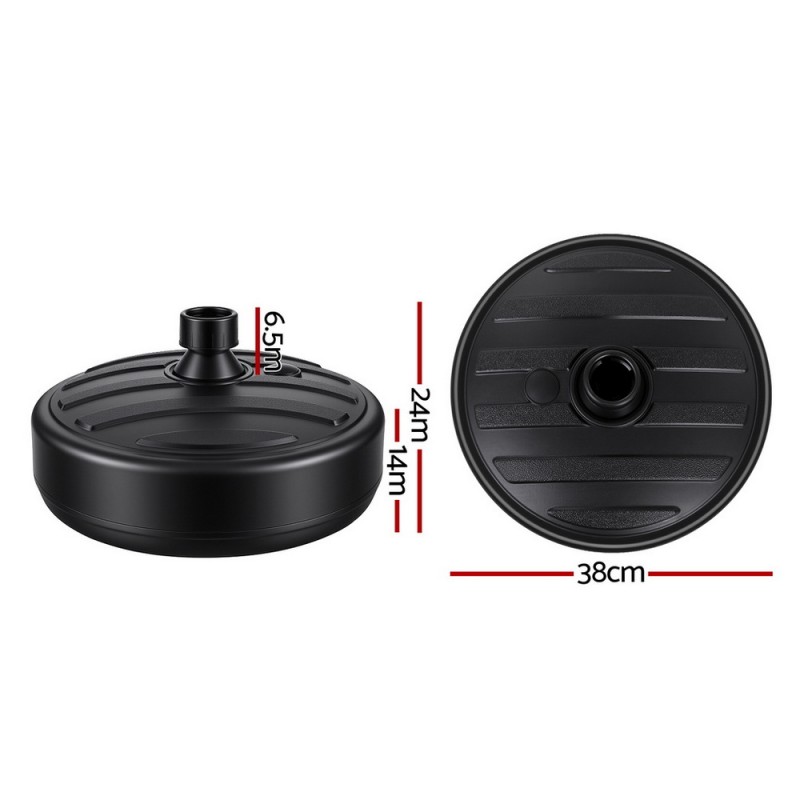 Secure your shade effortlessly with the Instahut Outdoor Umbrella Base Weight. Designed for maximum stability, this fillable base ensures your umbrella stands firm even on windy days by simply adding water, reaching up to 12kg in weight. Perfectly accommodating umbrella poles with diameters between 35mm to 38mm, this versatile base is compatible with umbrellas up to 2.7m wide. Crafted from durable PE plastic, its sleek black design features integrated carry handles for easy mobility, making it an essential anchor for your outdoor space. Whether you're setting up on the beach or in your backyard, this base provides steadfast support wherever you need it.