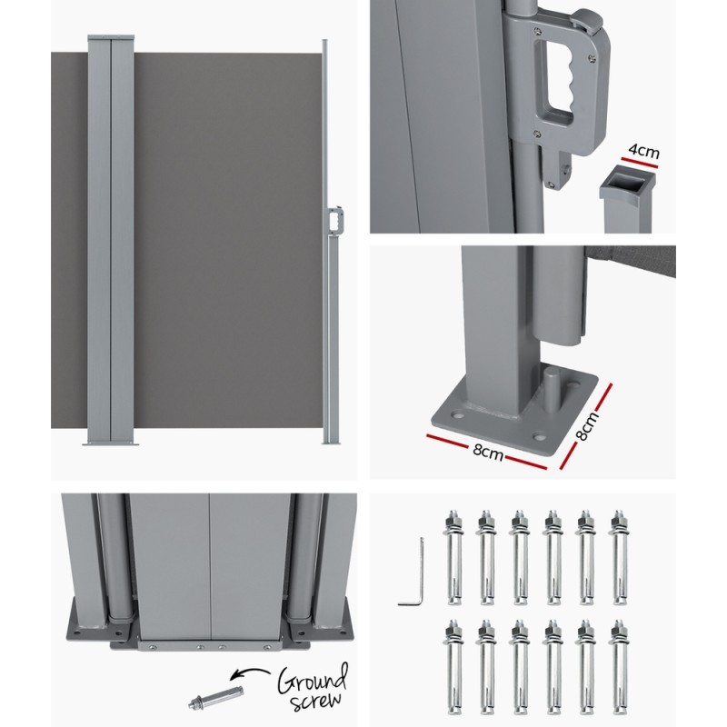 Enhance your outdoor space with the Instahut Side Awning Sun Shade. Crafted from UV and tear-resistant 100% polyester and a robust steel frame, this 1.8x6m grey retractable screen delivers superior privacy, wind protection, and sun-blocking performance. Designed for patios, balconies, and backyards, it features an automatic roll-back function, stable base, and flexible 90° installation angles, making it a stylish, practical addition to any outdoor setting. Professional installation recommended.