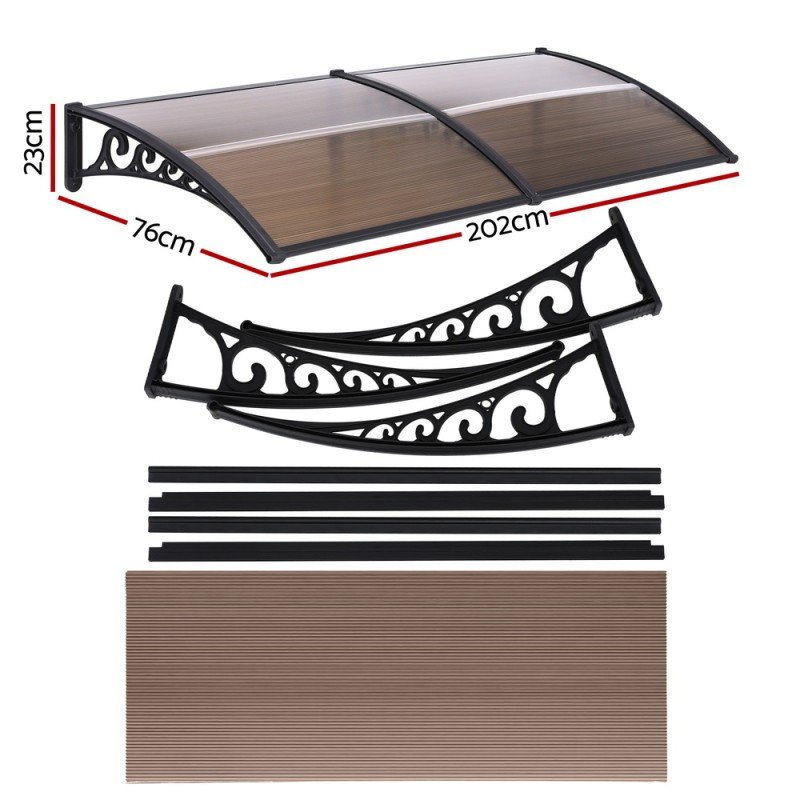 Elevate your home's aesthetic and functionality with the Instahut Window Door Awning. This chic and modern awning is perfect for windows and doors, offering a stylish solution to shield against sun and rain. Crafted with a robust 5mm thick PC panel, it ensures durability and UV resistance. The panel is supported by strong aluminium bars and plastic brackets, making the entire structure corrosion-resistant and low maintenance. Its quick and easy installation makes it ideal for both home and office use, adding value and appeal to any building.