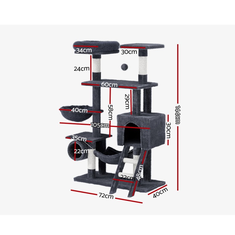 Delight your feline friend with the i.Pet Cat Tree, a 144cm tower designed to fulfill your pet's natural instincts. This multi-level playground offers a variety of nooks for scratching, hunting, climbing, and lounging. With plush, chemical-free velvet covering and natural sisal posts, protect your furniture while ensuring your cat's comfort. The sturdy wooden construction and stable base provide a safe haven for endless play. Let your cat explore with tunnels, hammocks, and more!