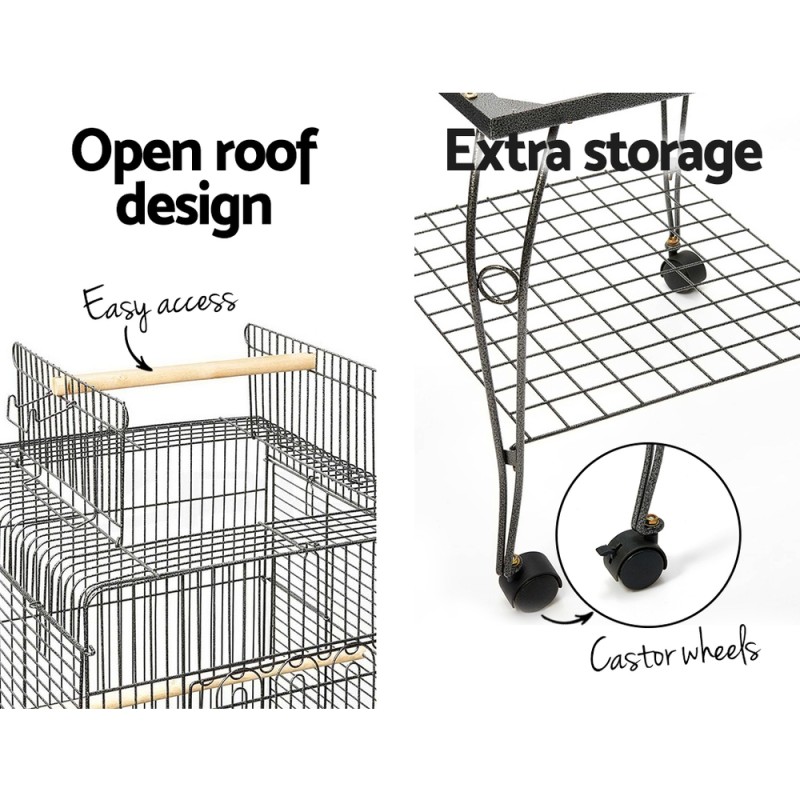 The i.Pet Bird Cage 145cm Large Aviary is the ultimate sanctuary for your feathered companions. Crafted from high-quality, powder-coated wrought iron, this cage offers a spacious and comfortable environment for your birds. Featuring an open-top design, it provides easy access and interaction. The cage includes two stainless steel feeders, two wooden perches, and a slide-out tray for effortless cleaning. With elegant-curved stands and a bottom shelf for extra storage, it's both functional and stylish, ensuring your birds live in luxury.