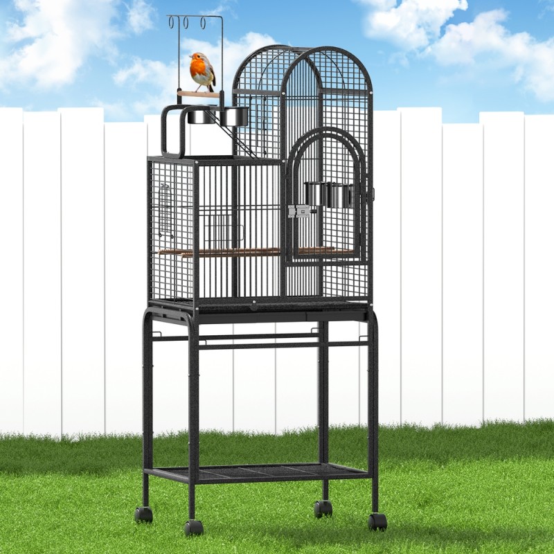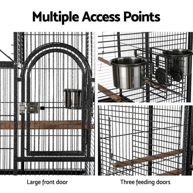 Discover a sanctuary for your feathered companions with the i.Pet Bird Cage 153cm Large Aviary. This thoughtfully designed cage combines fun with function, featuring a climbing ladder, toy hanger, and wooden perches. Easy maintenance is ensured with a slide-out tray and removable base, while multiple doors and castor wheels provide easy access and mobility. Crafted from durable wrought iron, this sleek black aviary offers unmatched comfort and entertainment for your birds, backed by a 1-year warranty.