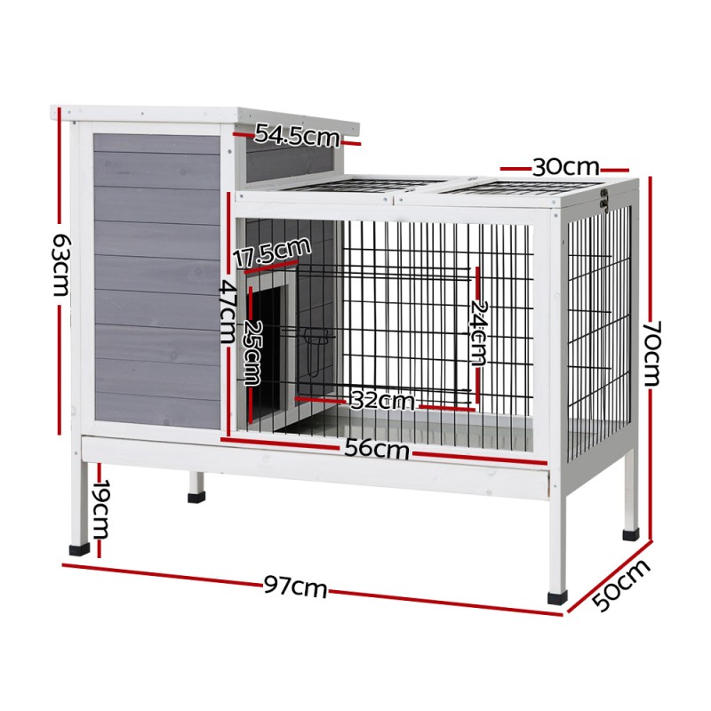 The i.Pet Rabbit Hutch is a spacious and cosy haven for your furry friends, crafted from high-quality Fir wood for durability. Its clever design features a separate indoor rest area and a play zone, ensuring your pets have a safe and comfortable environment. The hutch is equipped with easy-access doors and a slide-out tray for effortless cleaning. With a sturdy metal support rod and asphalt felt roof, this hutch is perfect for rabbits, guinea pigs, or even tortoises. Give your pets a secure and enjoyable home today!