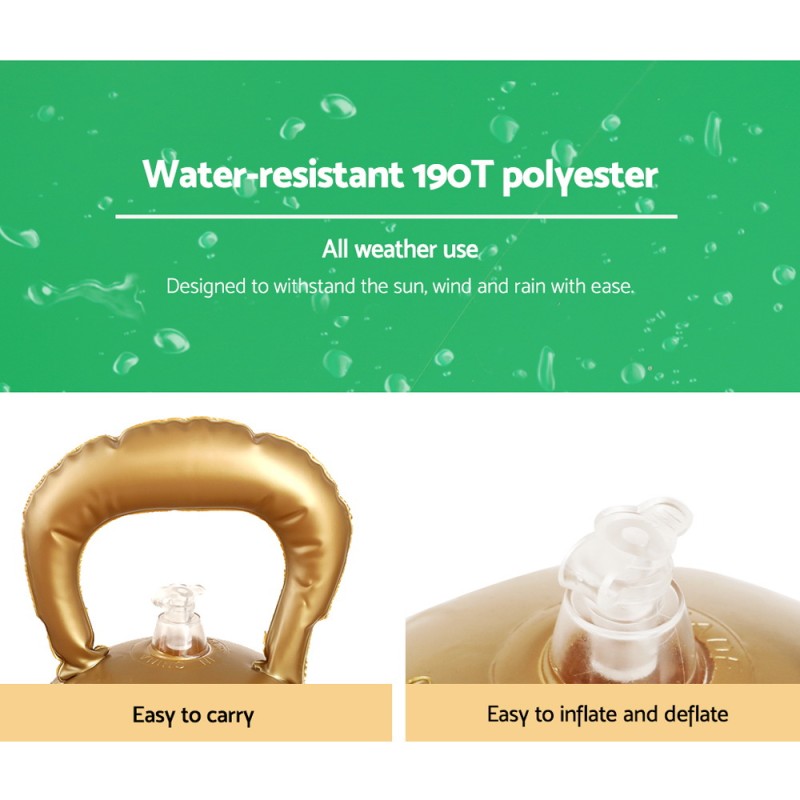 Transform your holiday decor into a winter wonderland with the Jingle Jollys Christmas Inflatable Ball Bauble. This charming 60cm green inflatable is crafted from 190T polyester, ensuring durability with its water-repellent and UV-resistant features, making it perfect for both indoor and outdoor use. The included pump simplifies inflation, while the easy unzip feature allows for quick deflation and storage. Whether placed in your living room or garden, this delightful centrepiece adds festive charm and a magical touch to any setting. Celebrate the season with ease and style—get your Jingle Jollys Inflatable early to ensure timely delivery!