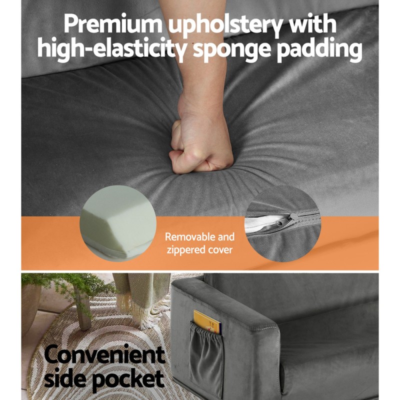 Introducing the Keezi Kids Sofa 2 Seater Flip Open Couch—perfect for your little ones to lounge, read, or play. This 2-in-1 sofa effortlessly converts into a bed, accommodating up to three kids. Upholstered in luxurious velour and built with a sturdy timber frame, it features thick sponge padding for ultimate comfort. The compact and lightweight design, complete with removable, zippered covers for easy cleaning, makes it ideal for any room. Gift your kids their own cosy corner today!