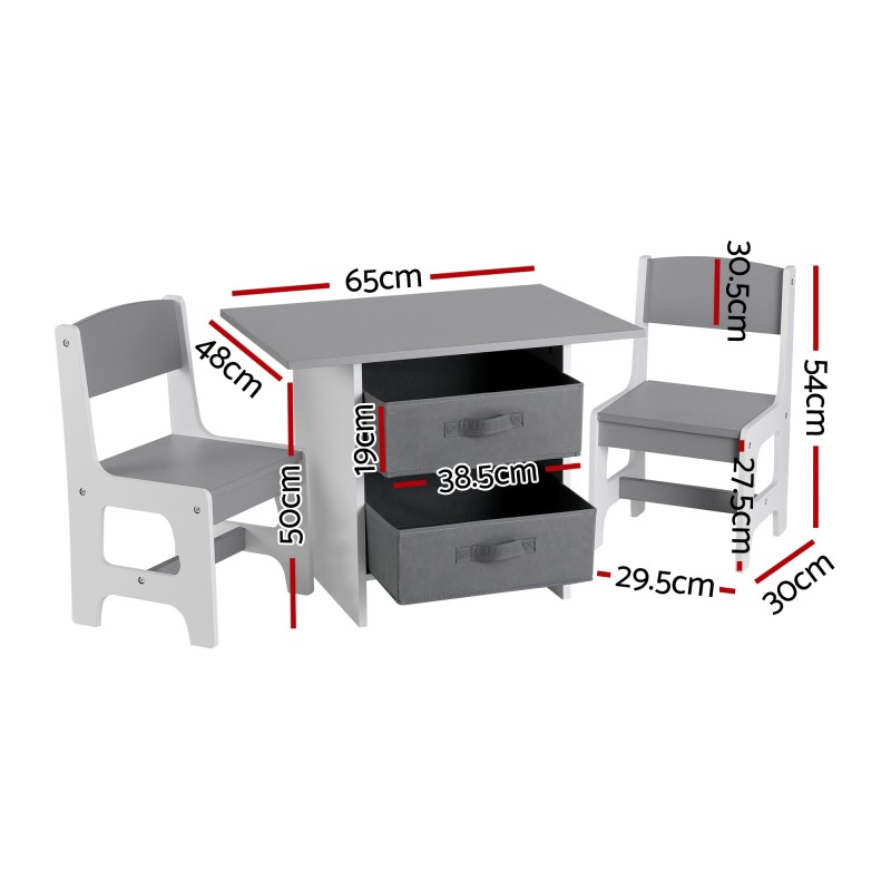 Transform your child's room or play area with the Keezi Kids Table and 2 Chairs Set, a perfect blend of style and functionality. This sturdy set, crafted from durable MDF with smooth edges, ensures safety and stability during study, play, or creative activities. The table features two open shelves with removable non-woven fabric drawers for smart storage of toys, books, and craft supplies. Lightweight and easy to clean, this set is ideal for kids aged 3 and above, encouraging them to organise their space effortlessly. With a sleek white and grey design, it's a practical and thoughtful gift for any occasion.