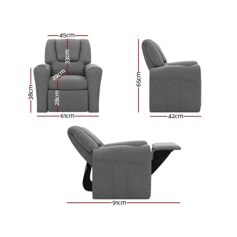 Like adult, like child. The Keezi Kids Recliner Chair in grey is the perfect lounge companion for your little one to enjoy moments of relaxation. Crafted from exquisite Linen Fabric and featuring 9cm plush cushioning, it offers unmatched comfort for reading, watching TV, or digital play. Its wide armrests provide ample support, and the sturdy metal structure ensures safety and durability. With a built-in cup holder, your child’s favourite drink is always within reach, making it an ideal personal retreat.