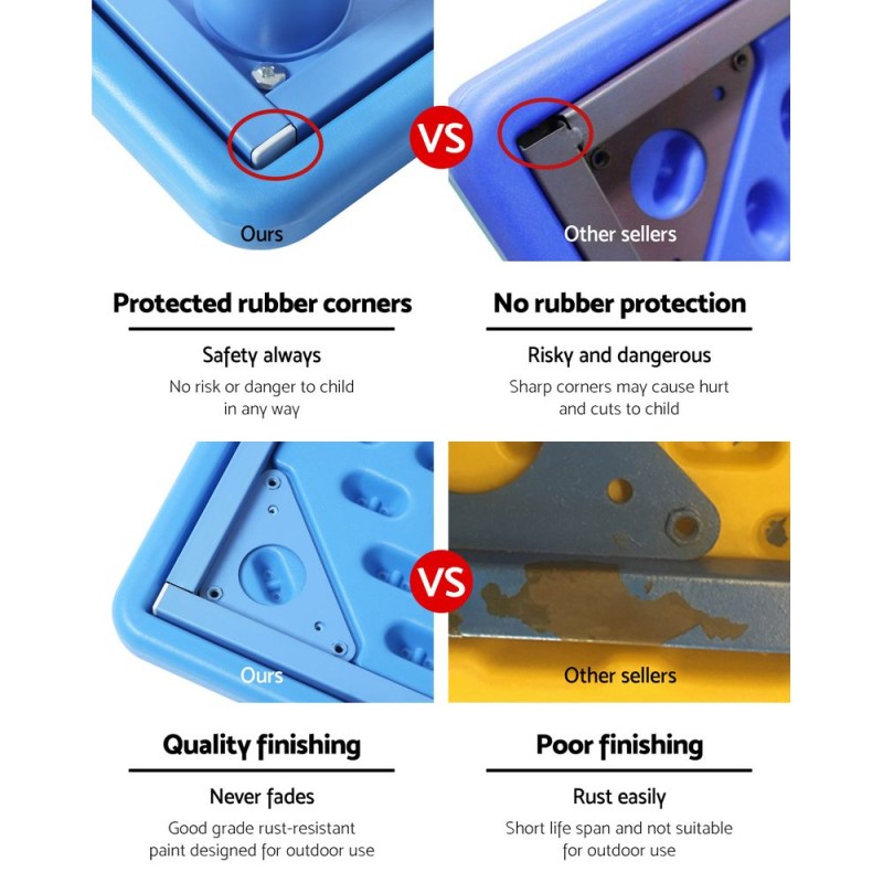 Introduce your child to a world of vibrant play and study with the Keezi 5PCS Kids Table and Chairs Set. Crafted from durable HDPE plastic and sturdy powder-coated steel, this set is built to last. With a weight capacity of 100kg for the table and 50kg for each chair, it's perfect for any playful adventure. Designed to meet EN71 European Safety standards, it features round edges and non-toxic finishes. Adjustable and stackable, it's perfect for both indoor and outdoor use. Let imagination soar!