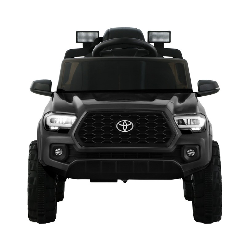 Ignite your child's sense of adventure with the Kid's Electric Ride On Car Rigo Toyota Tacoma Off Road Jeep Toy. Officially licensed by Toyota, this stunning black ride-on offers a realistic driving experience with its keyless start, twin motors, and acceleration pedal. The intuitive control dashboard, FM radio, and MP3 input provide endless entertainment, while the safety seat belt and remote control ensure peace of mind for parents. Designed for ages 3+, it features a sturdy build with anti-slip tyres and 4-wheel spring suspension. With a 30kg loading capacity and adjustable speed range of 2-4km/h, your little one can enjoy up to 2 hours of thrilling exploration per charge.