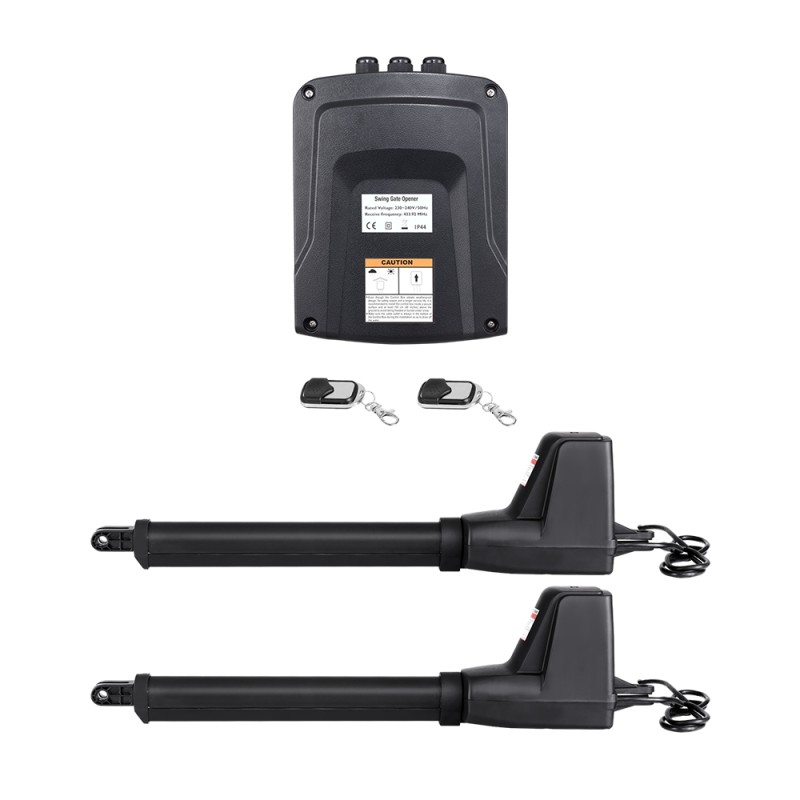 Say goodbye to the hassle of manual gate operation with the LockMaster Automatic Electric Gate Opener. Perfect for double swing gates up to 5.5m wide and 400kg per arm, this powerful 24V system ensures smooth operation even during power outages. With high-quality aluminium swing arms, a weatherproof control box, and a 30m range remote control, convenience and durability are guaranteed. Easy installation with all necessary hardware included. Plus, enjoy peace of mind with a 1-year warranty.