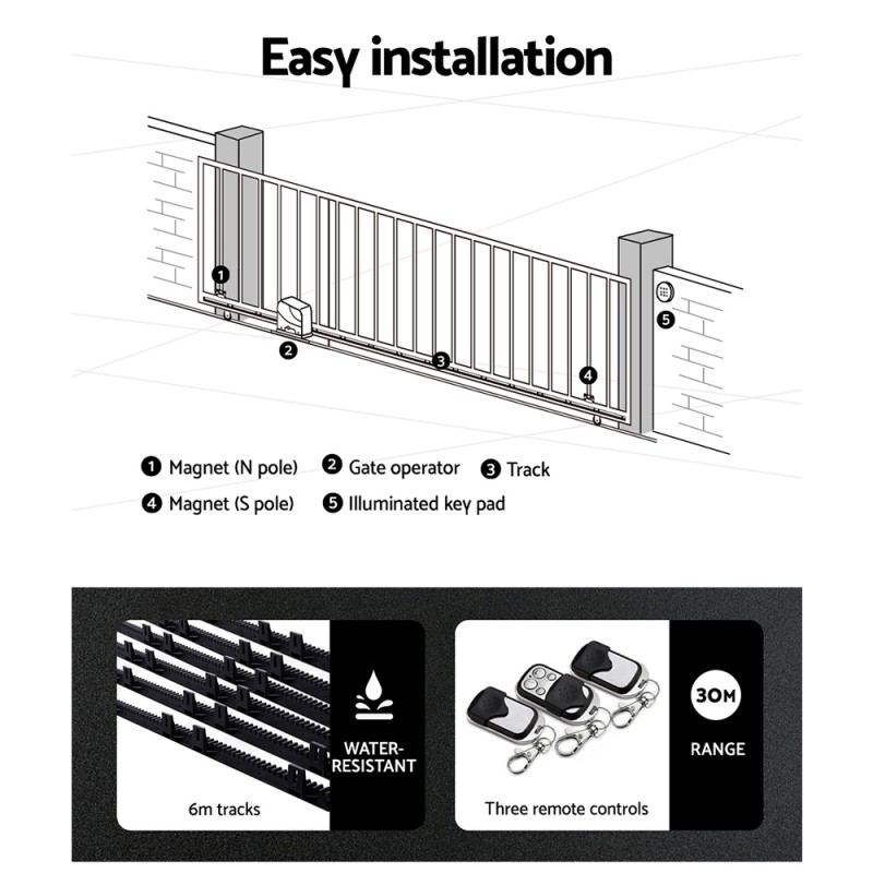 - Handles gates up to 600kg and 6m