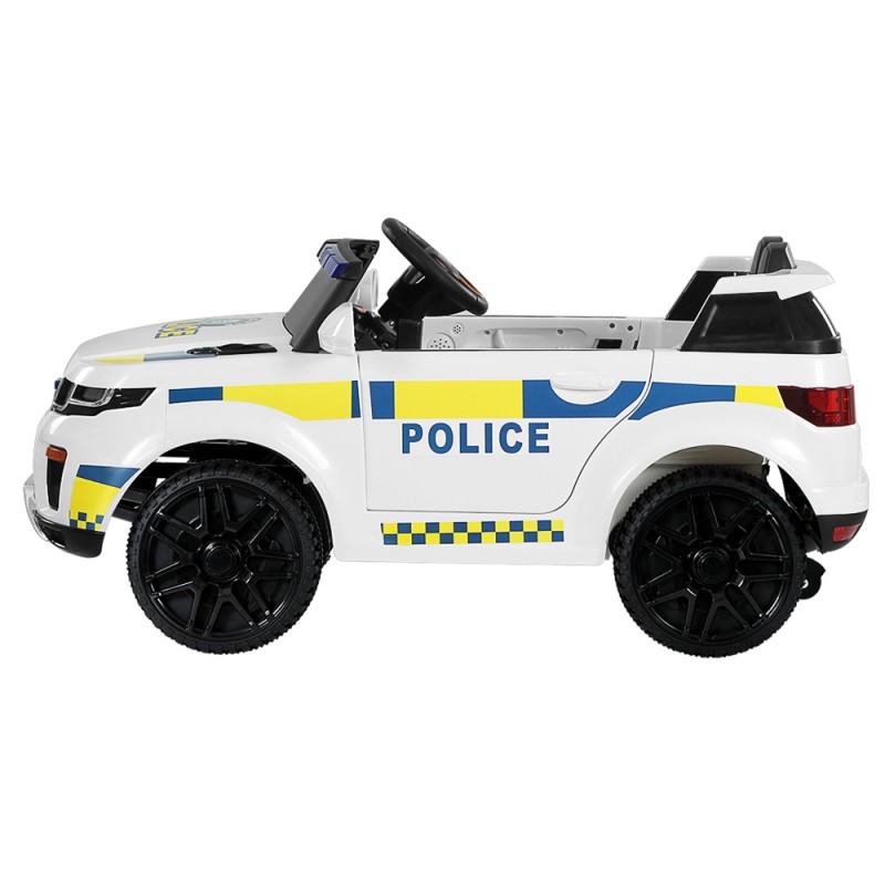 Let your child's imagination soar with the Rigo Kids Electric Ride On Patrol Police Car! Designed for ages 3 and up, this ride-on offers a realistic driving experience with a steering wheel, acceleration pedal, and twin motors. Featuring an adjustable seat belt, keyless start, flashing lights, and built-in music, it ensures safety and fun. Parents can supervise using the included remote control. With a sleek white lacquer finish and a robust build, it's perfect for adventurous young officers.