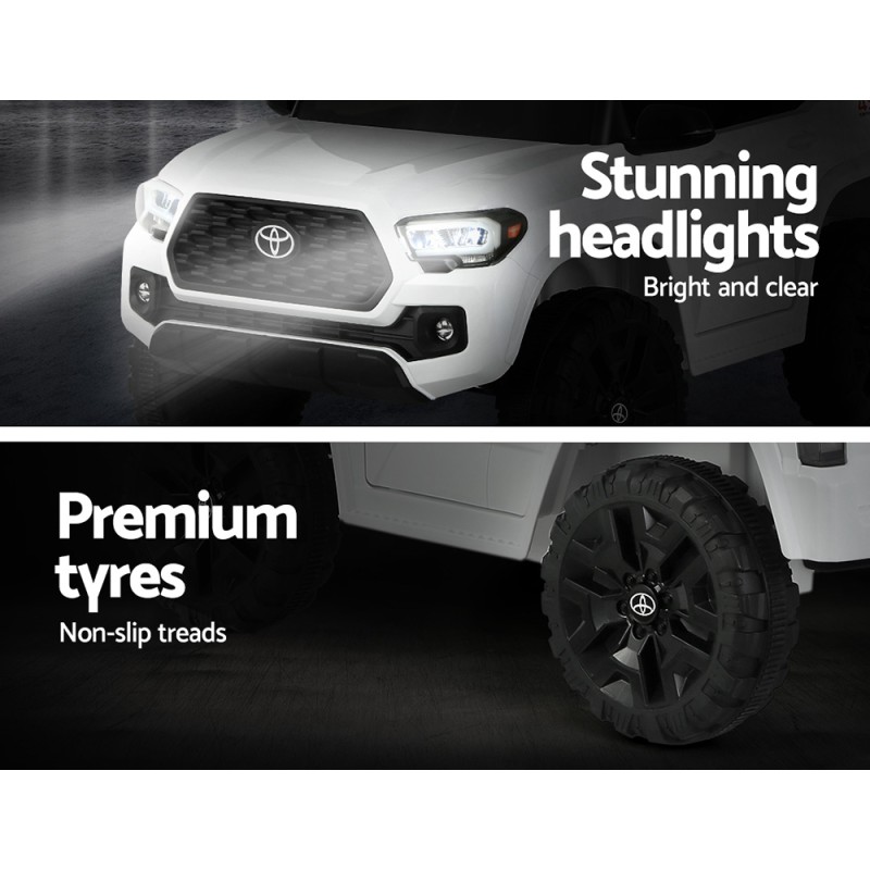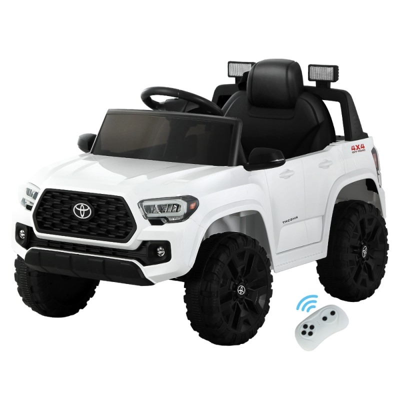 Introduce your little one to the thrill of driving with the Rigo Kids Electric Ride On Car Toyota Tacoma Off Road Jeep Toy. Officially licensed by Toyota, this sleek white ride-on car offers a realistic driving experience with a steering wheel, acceleration pedal, and forward/reverse operation. Designed for safety and fun, it features a safety seat belt, anti-slip tyres, and a remote control for parental supervision. With twin motors, spring suspension, and entertaining features like an MP3 input and FM radio, this Tacoma ride-on is perfect for young car enthusiasts aged 3 and up, providing up to 2 hours of excitement per full charge. Gift your child the joy of exploration with this premium ride-on car.